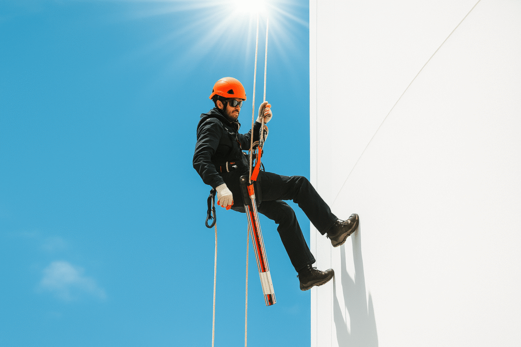 Pranje velikih staklenih površina, krovnih prozora, roletni, teško dostupnih prozora, popravka fasada sa užeta.